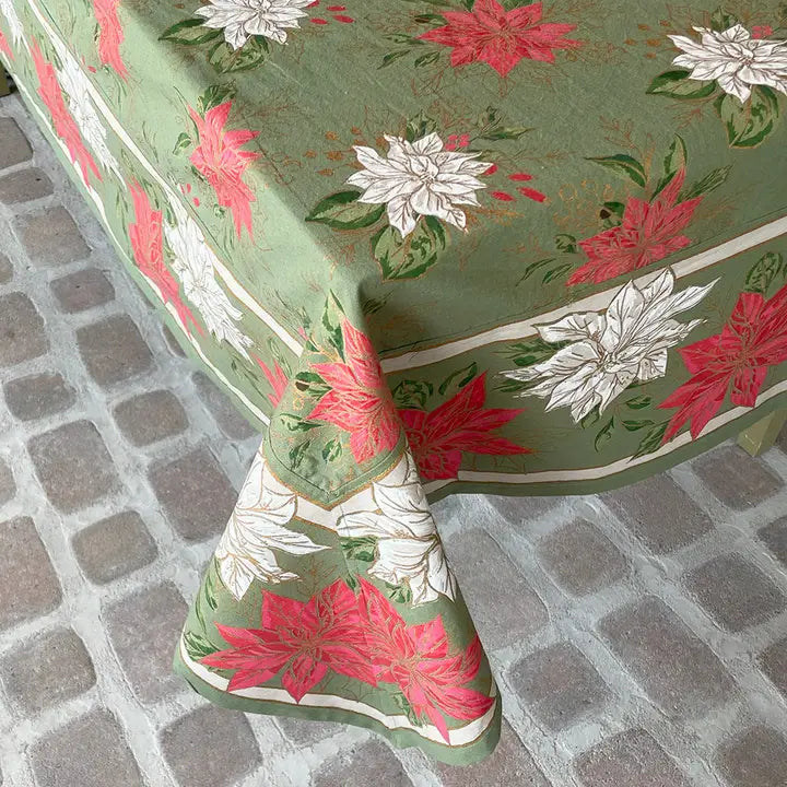 Poinsettia Green Tablecloth